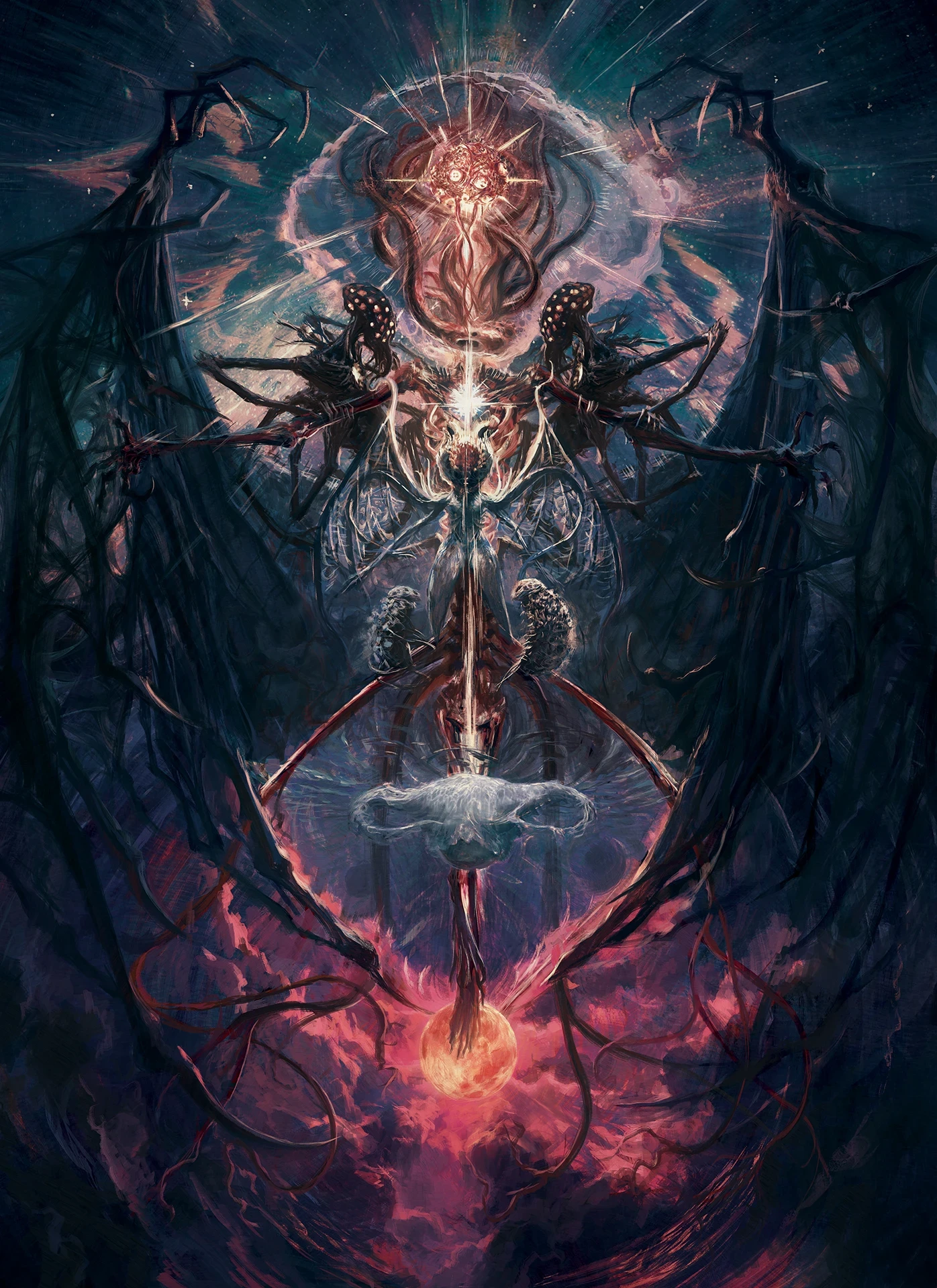 "Cosmo" Chapter 2 cover artwork for RoundTwo's Bloodborne lore book, Apokalypsis: Blood. For this piece I wanted to show Bloodborne's Great Ones arranged like a twisted divine vision - like something you might see when you make contact with the cosmos.